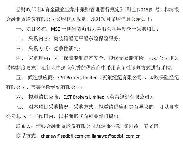 MSC 一期集装箱船无辜船东险保险经纪服务年度统一采购竞争性谈 判采购信息公告