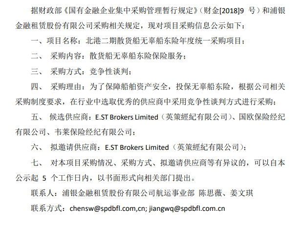 北港二期散货船无辜船东险保险经纪服务年度统一采购竞争性谈判 采购信息公告